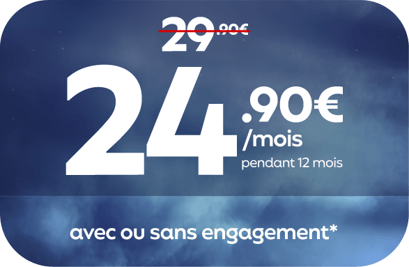 (2) DUO INTENSE : L’offre inclus également un forfait Mobile illimité Europe avec 100 Go d’une valeur de 49,90 € ramené à 15 €. Soit 60 % de réduction sur l’abonnement Mobile. L’offre sans réduction représente une valeur de 84.80 €/mois et est proposée à 59 €/mois, soit une réduction de 25.80 € par mois. En cas d’annulation de l’abonnement mobile seul, l’abonnement internet sera facturé 44,90 €/mois. En cas d’annulation de l’abonnement Fibre, le forfait mobile sera facturé 49,90 €/mois, prix catalogue.